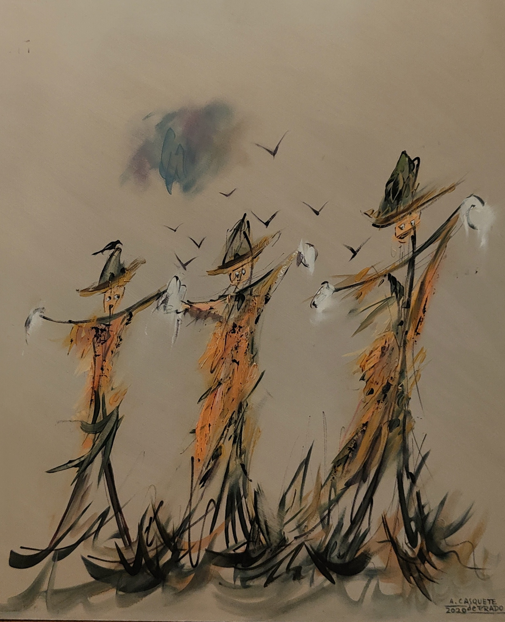 460.Pobres espantapajaros.2020.Oleo sobre table.46x55